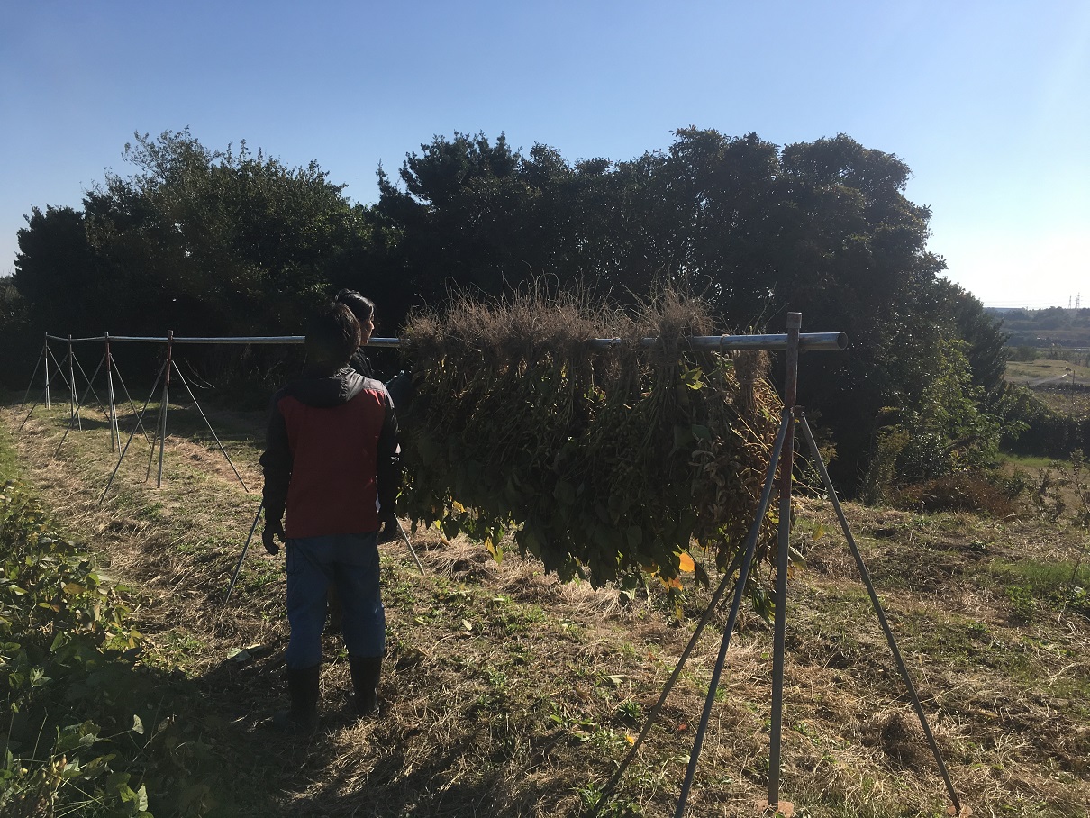 今回は、第一回目に播いた大豆の収穫です。