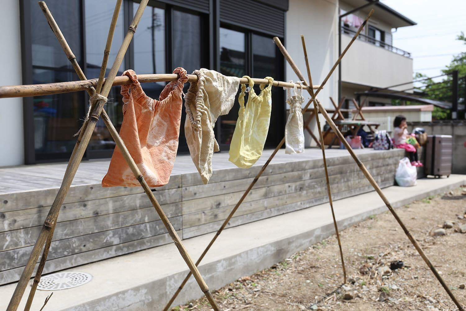 今回の自然と暮らしの市場、手づくりの寺子屋はふんどしパンツや手拭い、ハンカチを草木染め。