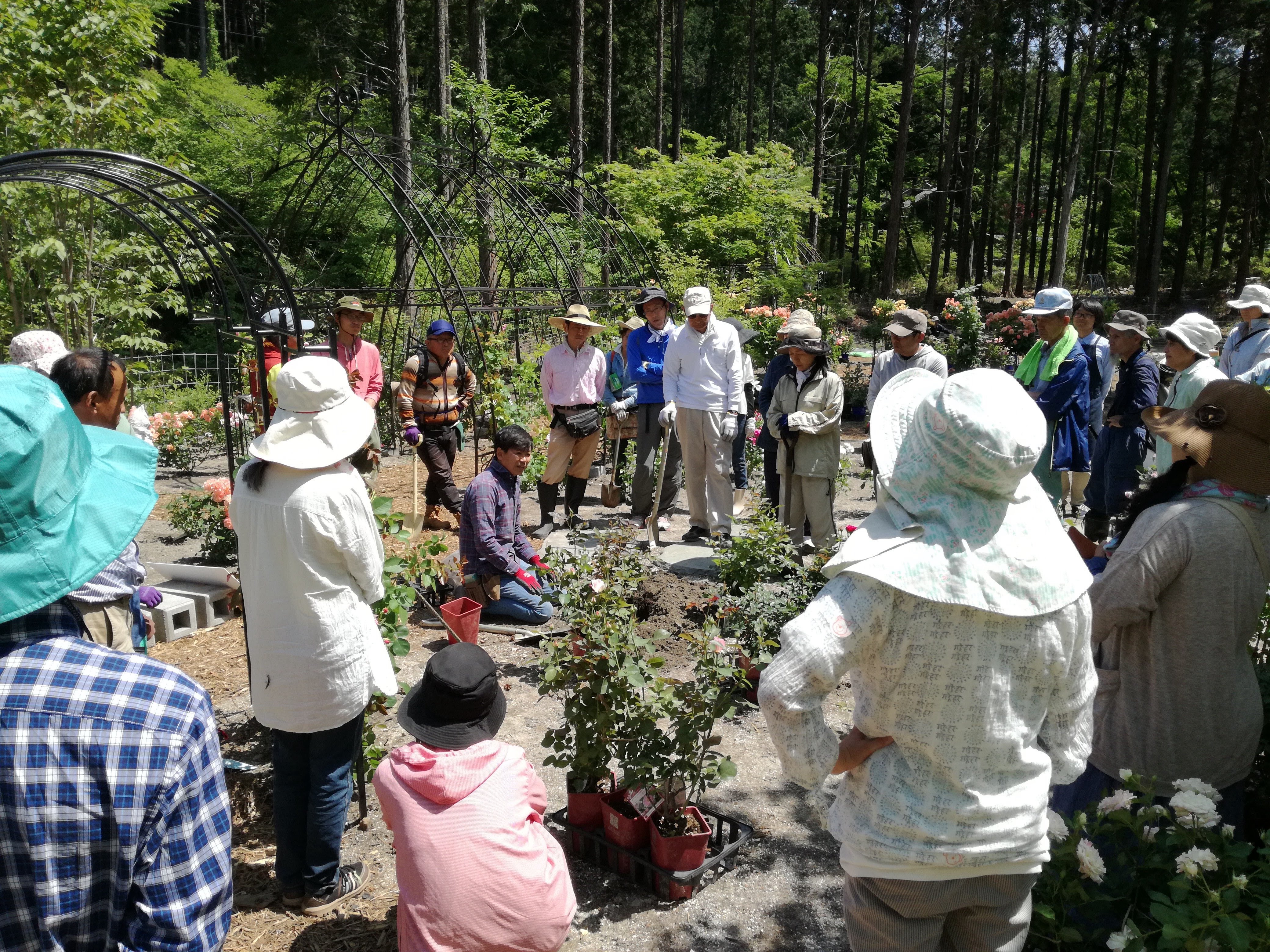 ばら園の植樹。上に書いた笹竹のお花を見せていただけた場所。