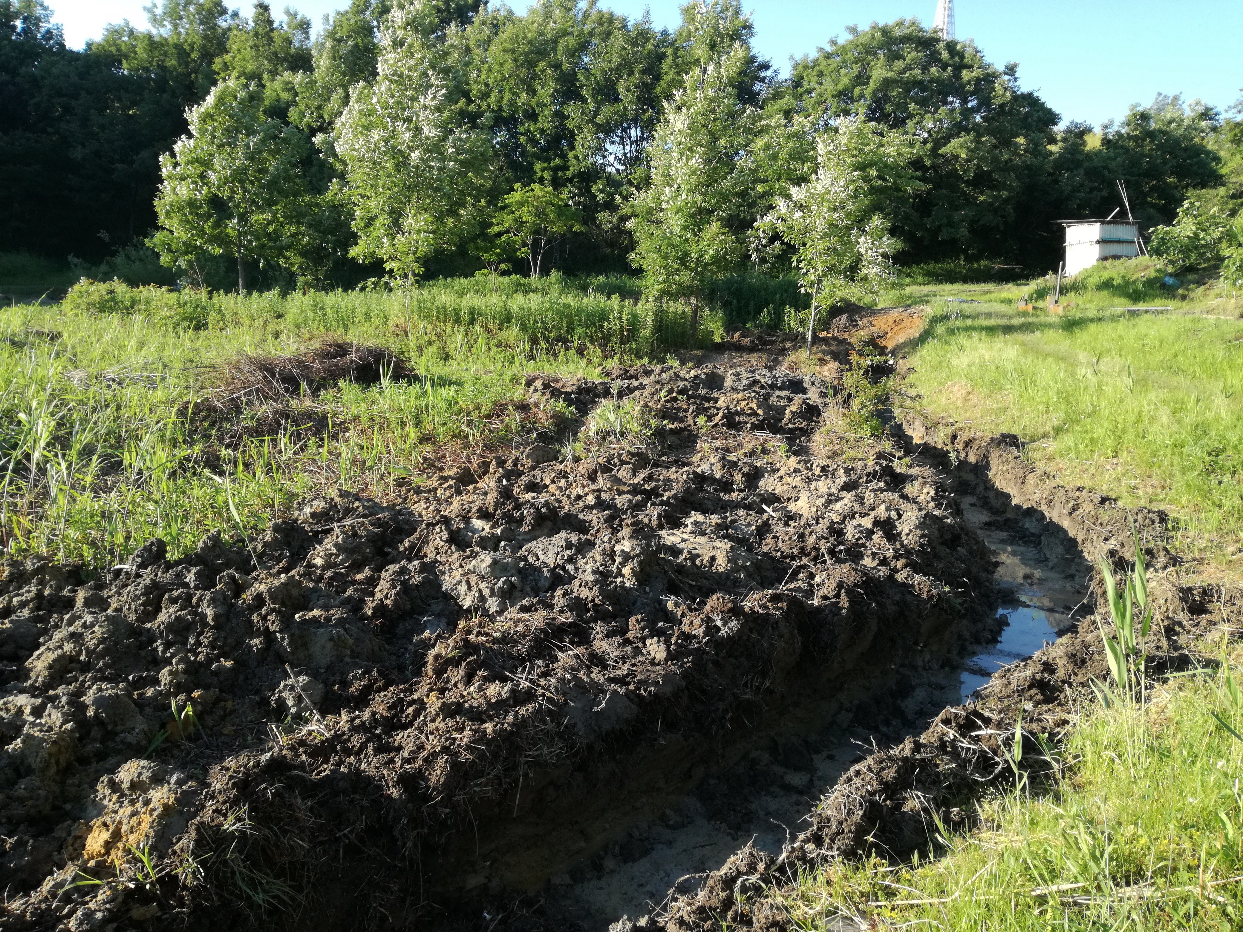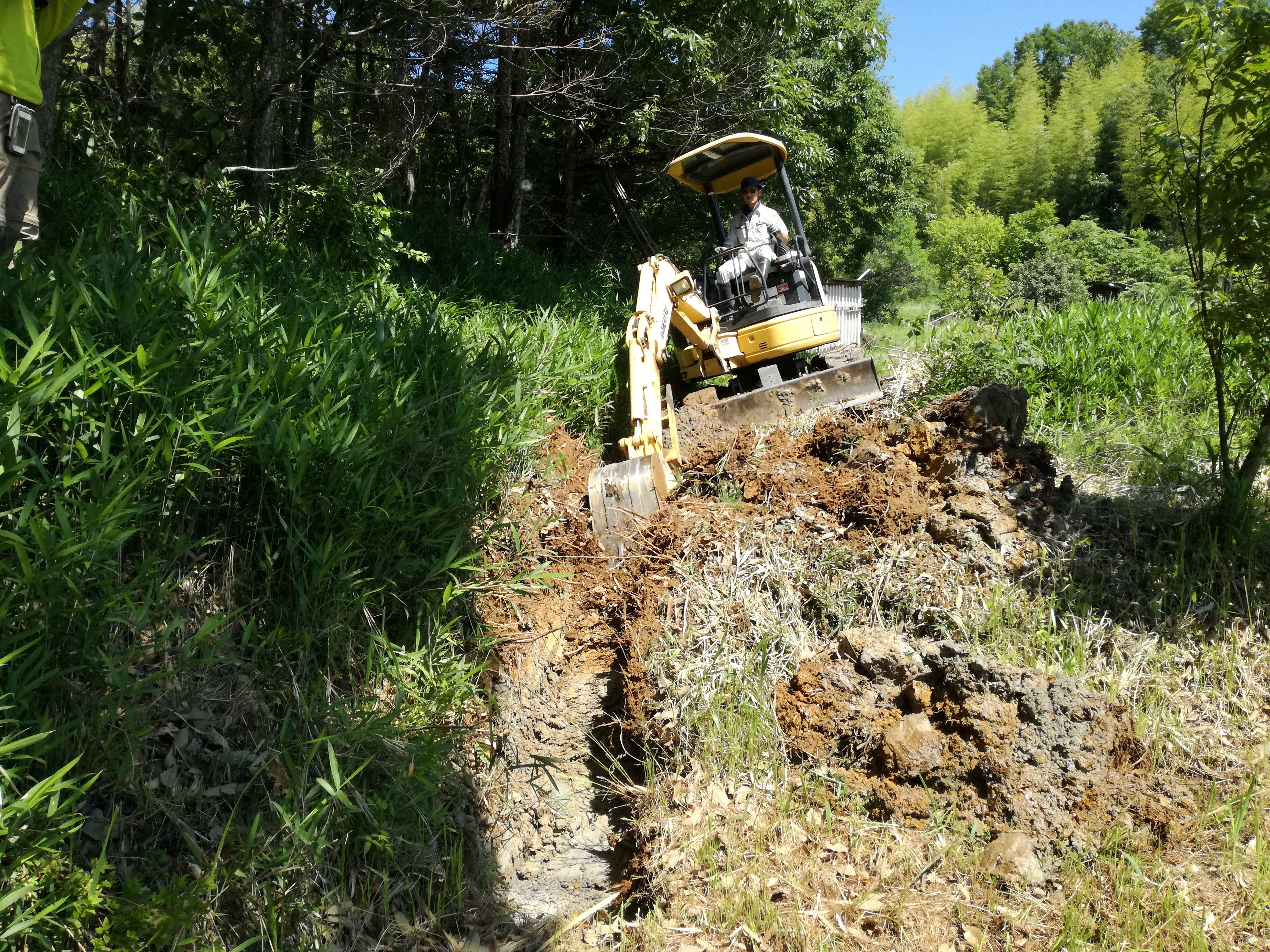 素人目でもやりにくそうに見える所も、小さな木は避けて溝を切ってくださり。