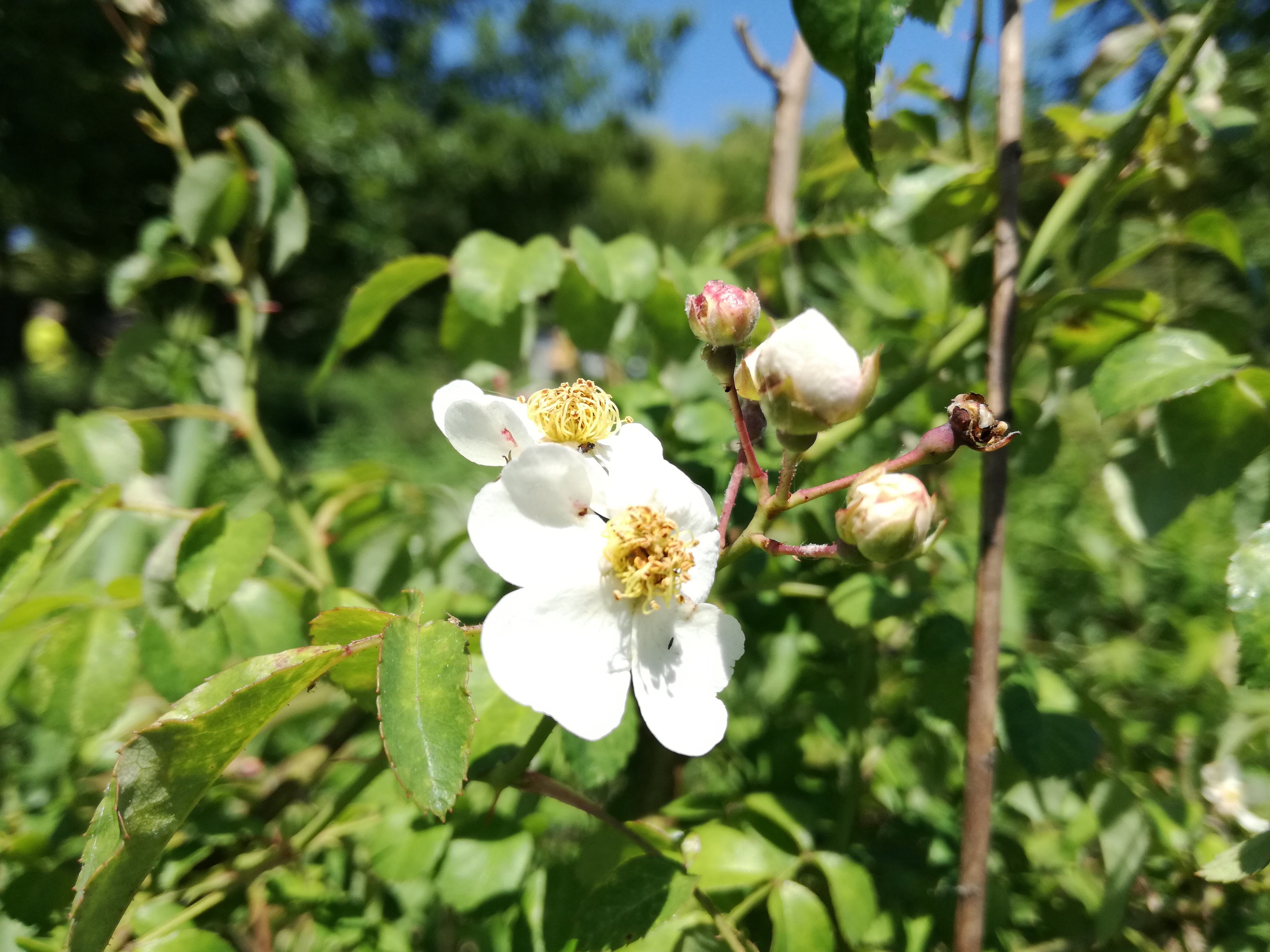 野薔薇のお花も。ここには野薔薇がたくさん群生していて。野薔薇は絶対に残したくて。しかし、開墾初めの草刈り時がすごい大変で。ススキやセイタカ、ガマやチガヤ等、背の高い色んな草たちに絡まってて。棘で服が破れるし、痛いし(笑)なのに、私の我儘を受け入れ、難しい作業を実行してくれたつむぎてメンバーに本当に感謝です。無事に残せて本当に嬉しい!!
