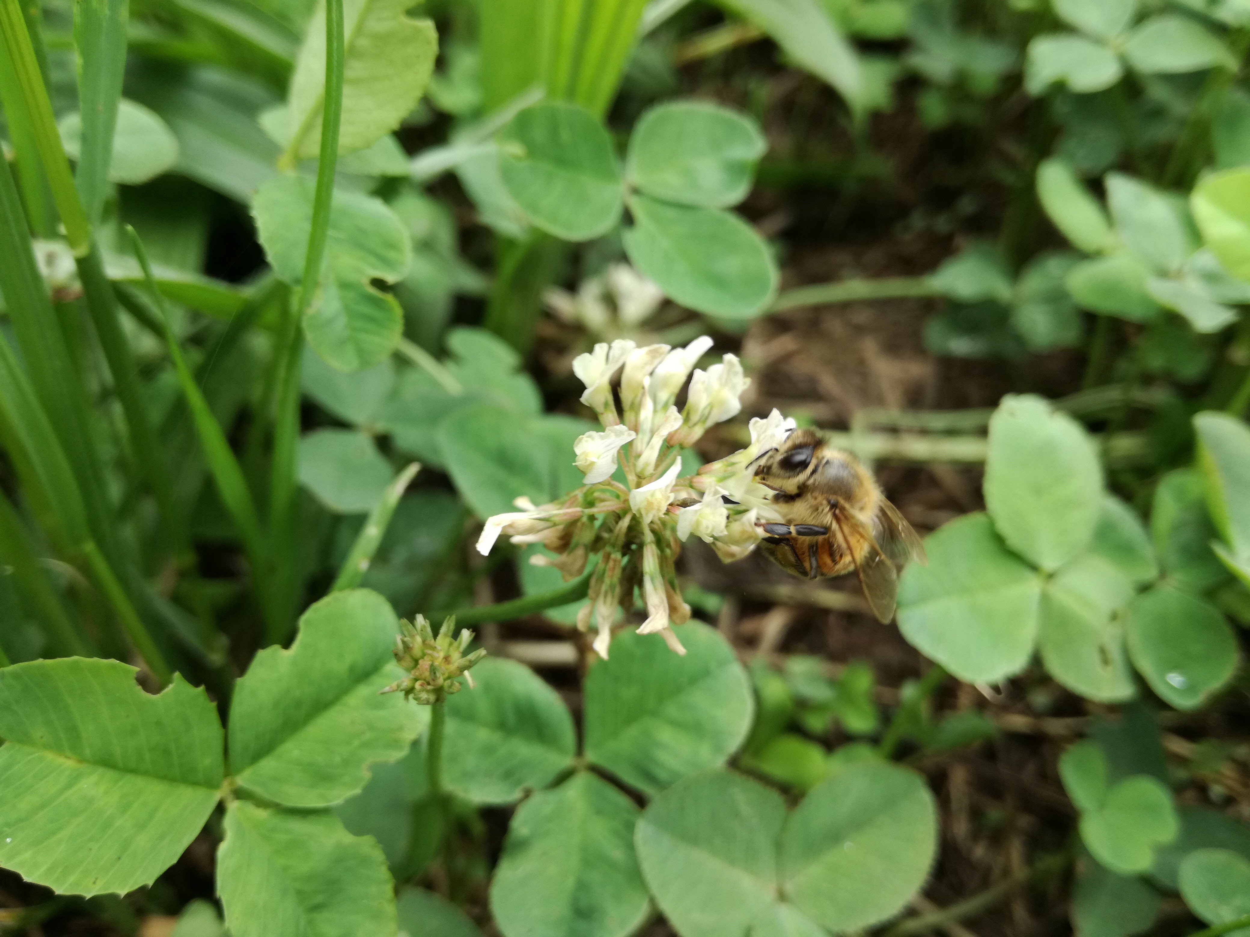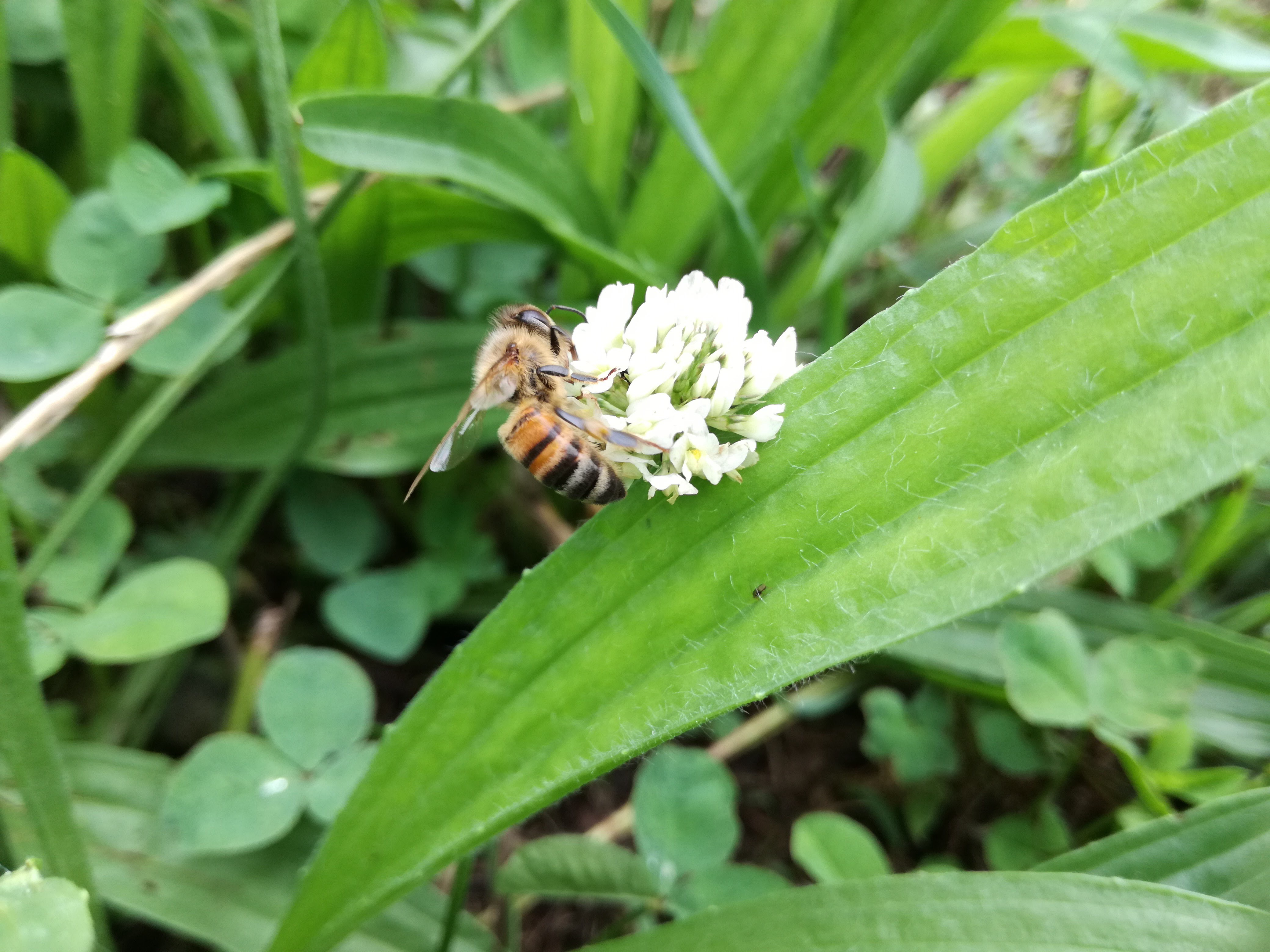 畑には今日もみつばちたちがたくさん。どこから来てるのかなー?