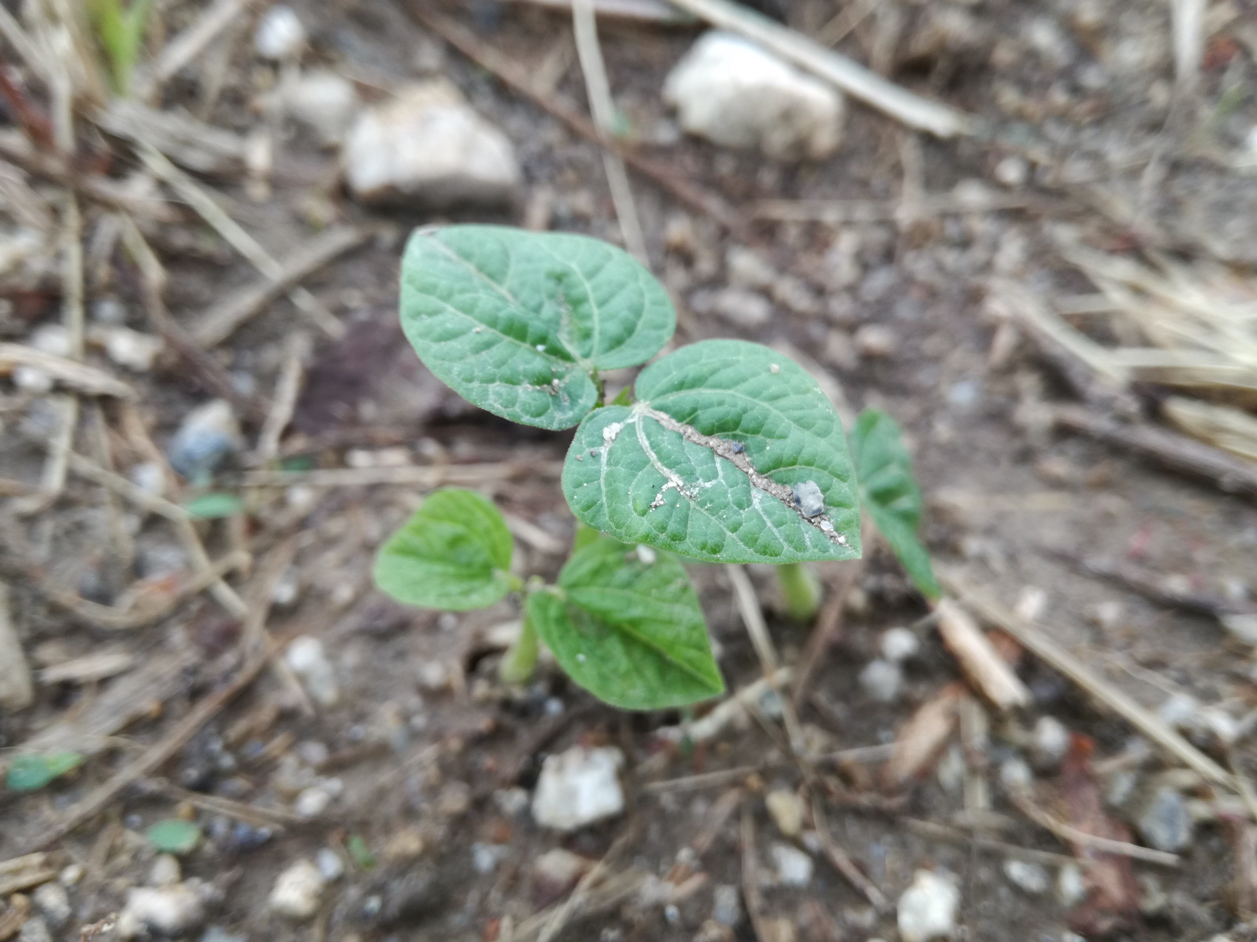 豆たちも、その時期に食べ尽くされちゃったら、生き残れなくて困るはず。食べ尽くされる前に成長して、鳥たちが食べたくなくなる成分を子葉に作るんだろうなぁ。ここまで成長すれば、鳥たちに食べられる心配は大分減ります。