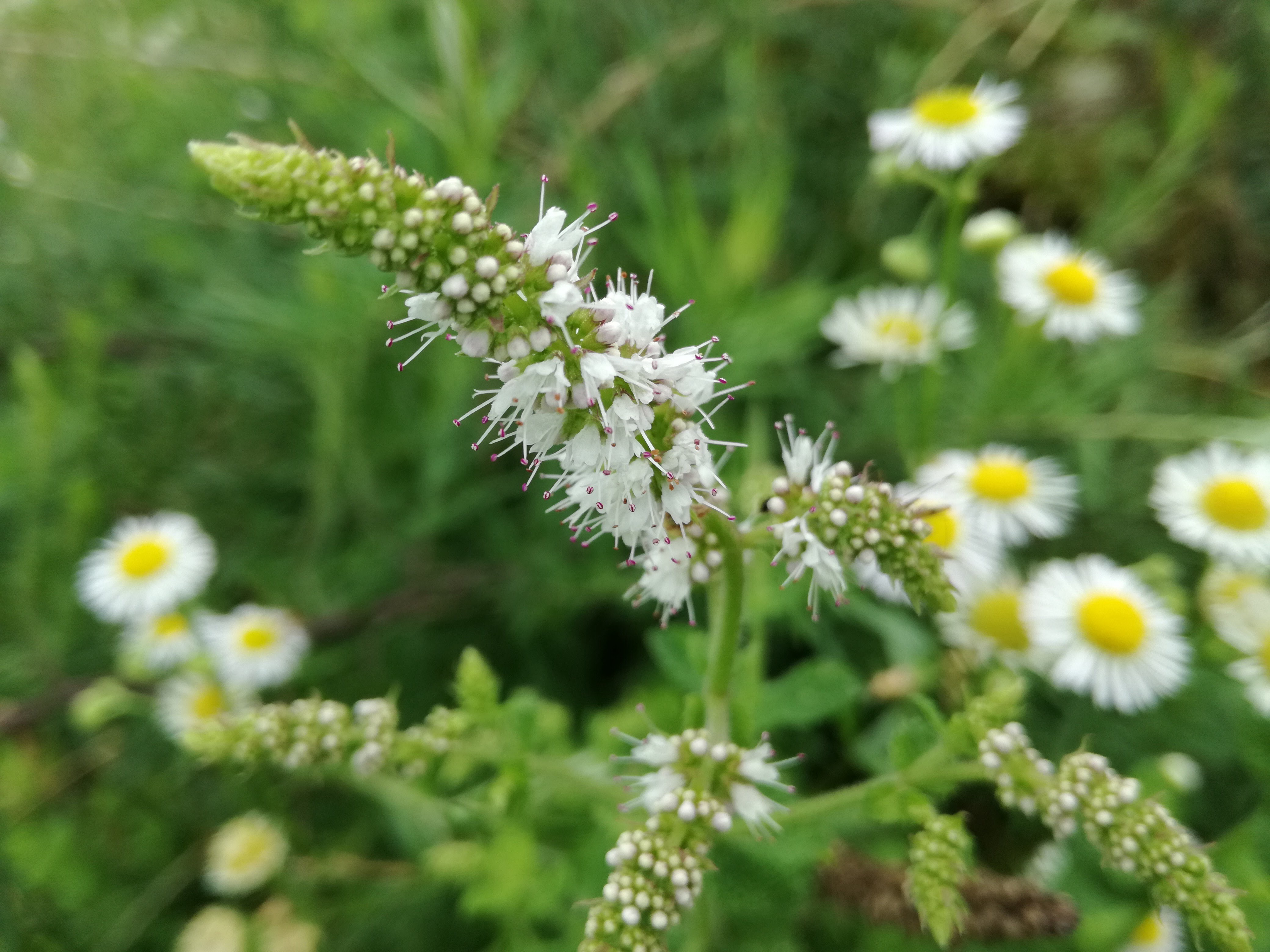 長久手の畑は、今、小さな白いお花がいろいろ。ミントのお花。ヒメジョオンのお花。
