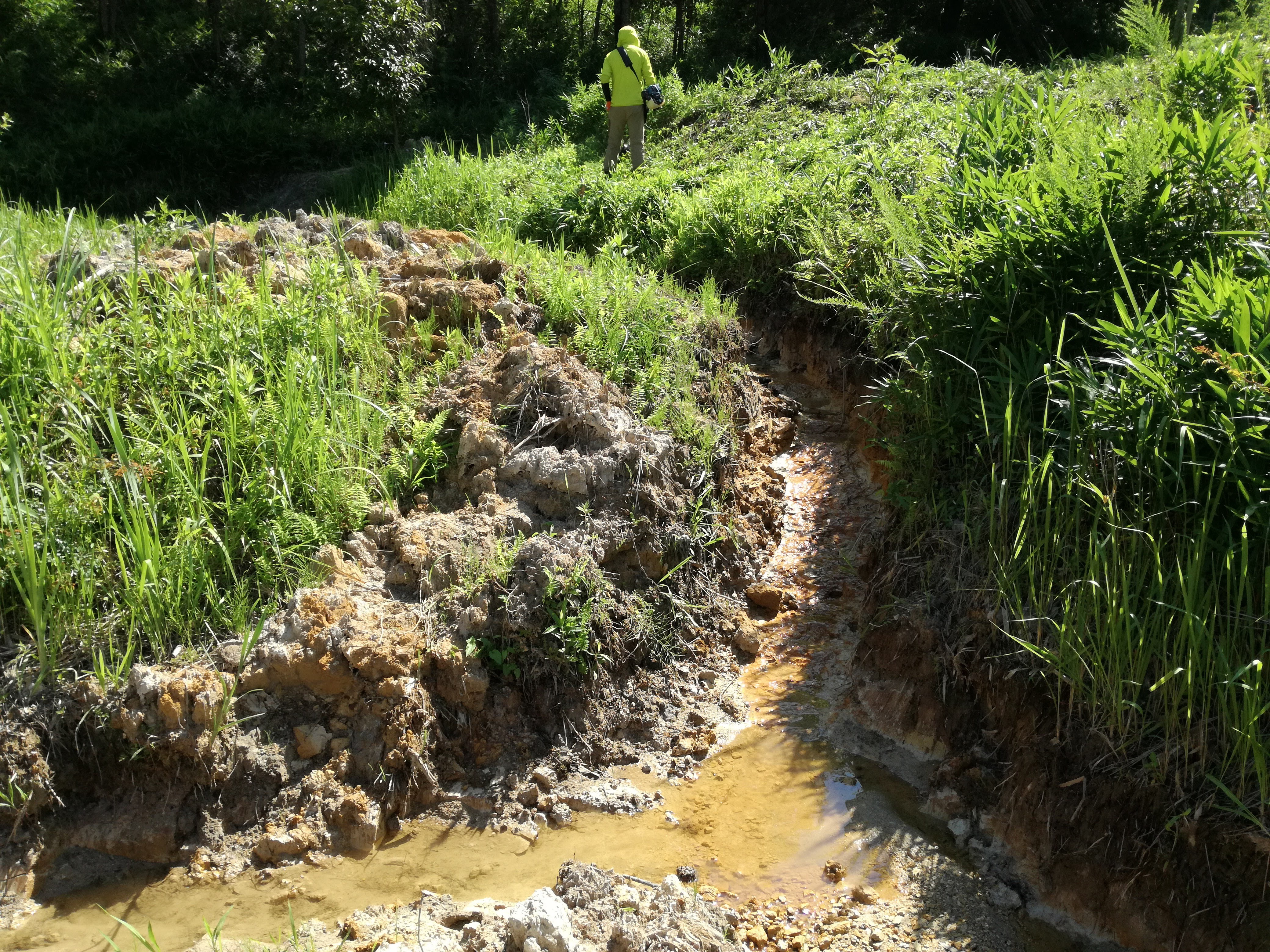 もう一箇所、溝の中で湧水が出ているところを見つけました。その周りに、水草が生えてきてる。