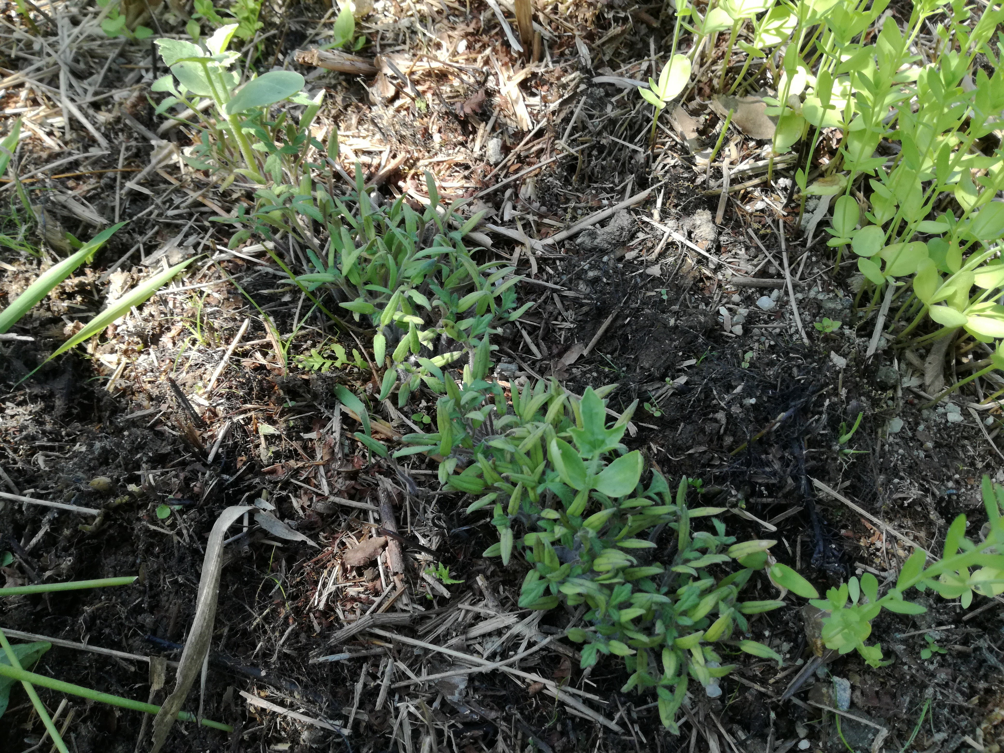 土の状態が知りたくて、各所に少しずつ種を蒔いてみました。