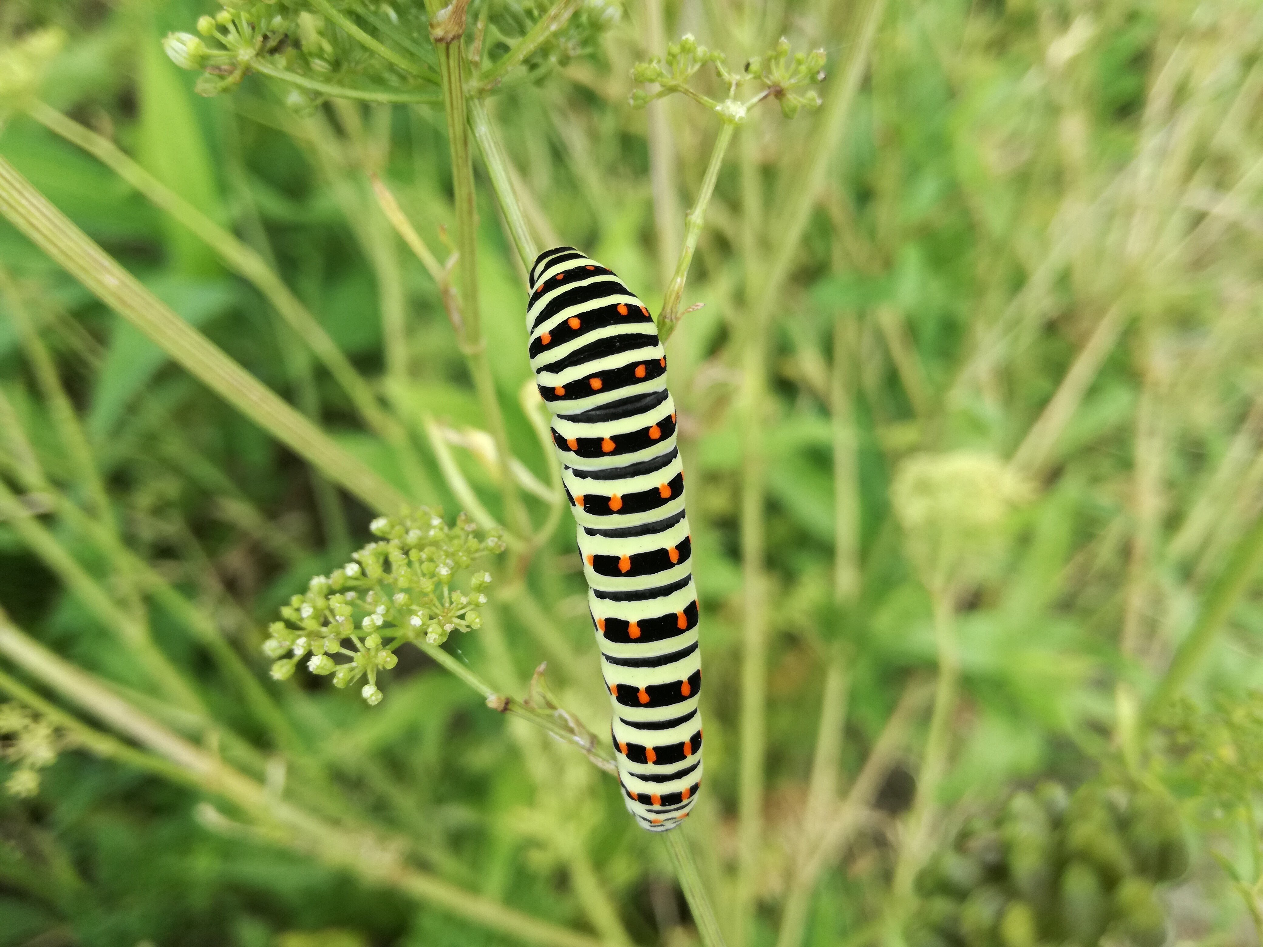 パセリに寄ってくるいも虫ちゃん発見。絵みたいな柄だね。なんでそんな柄なの?