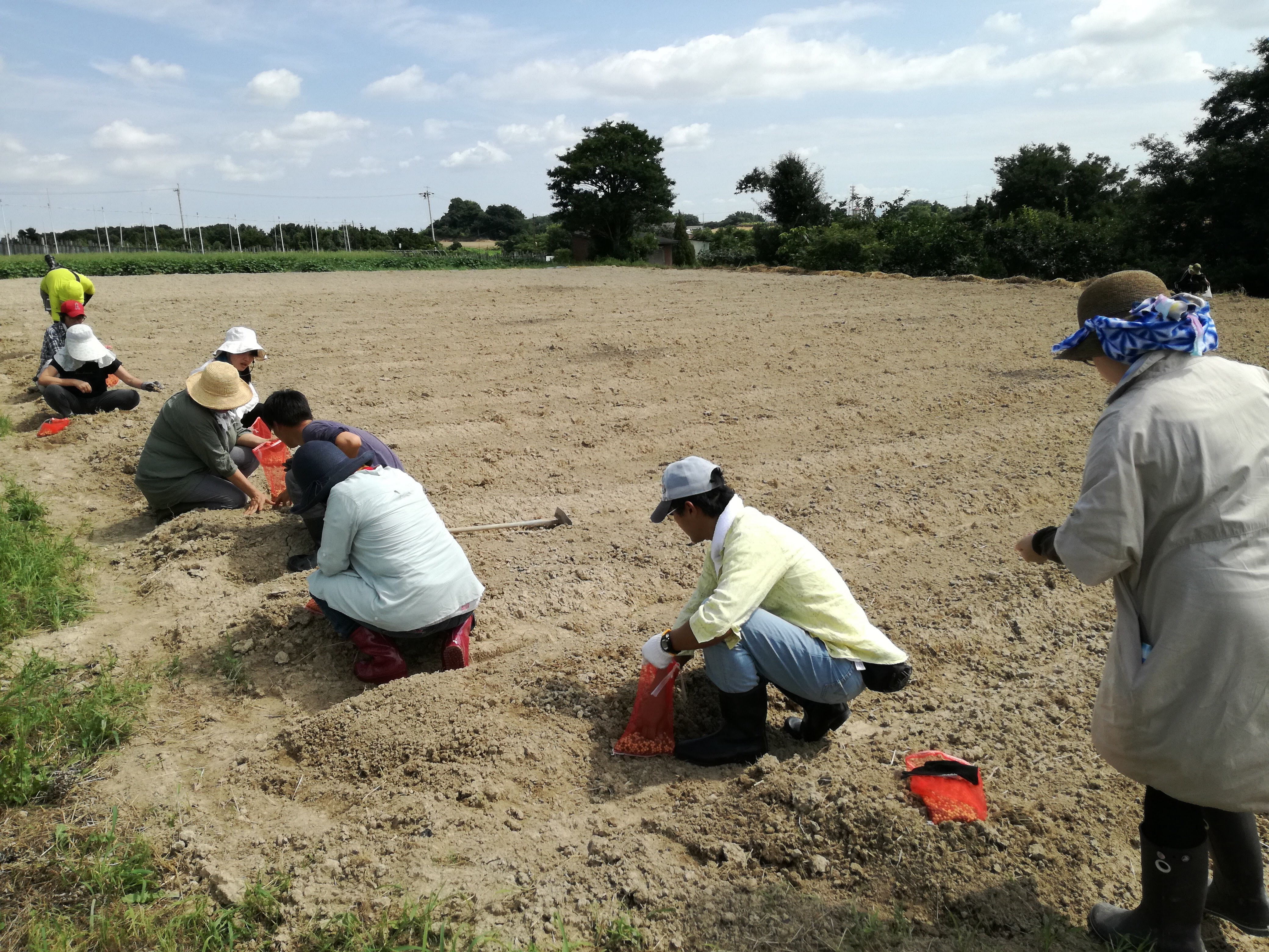 最初はみんなで一列になって、あとは思い思いに種蒔き開始!