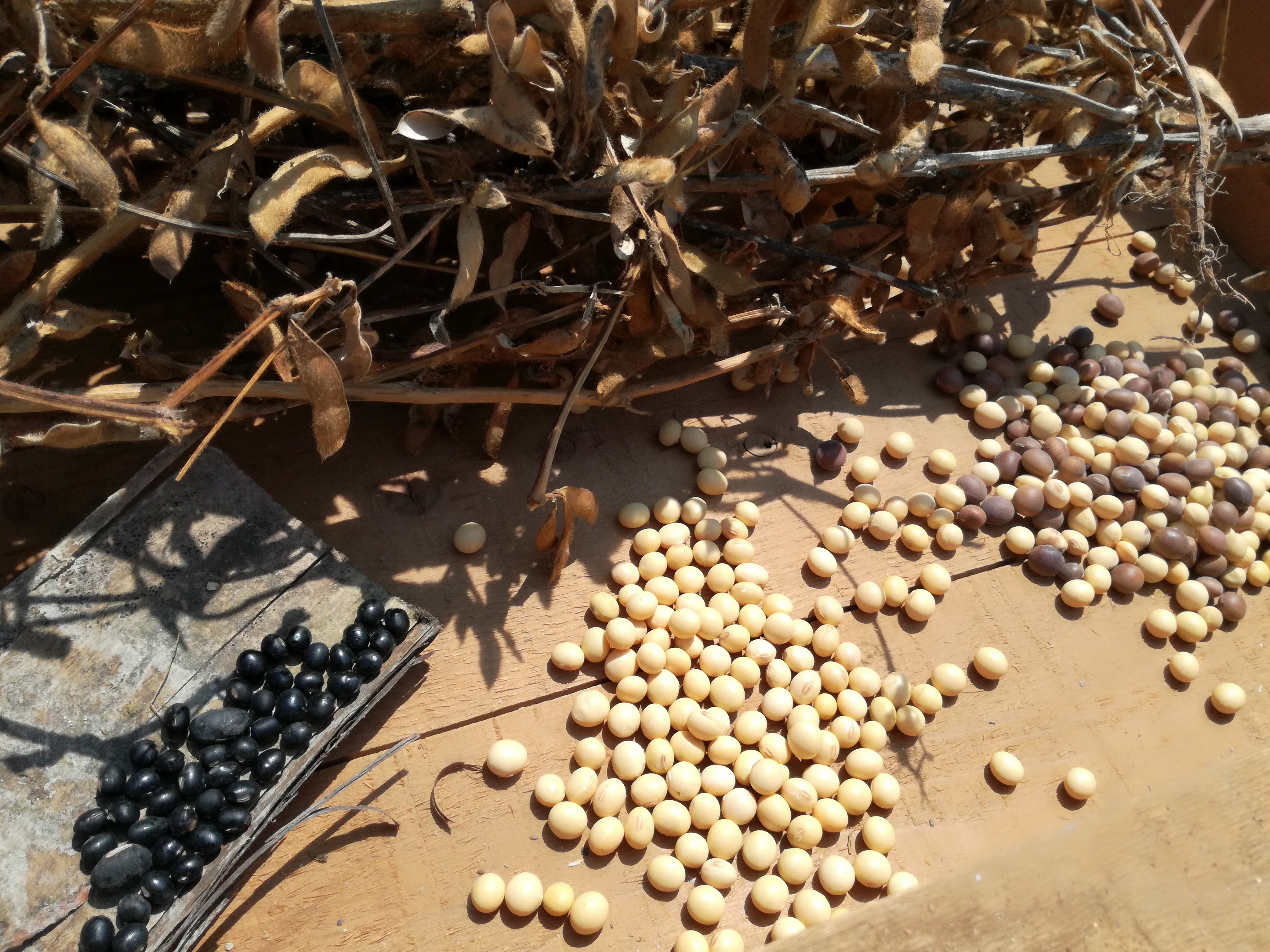 種をつなぎ続けている三色大豆。長久手で育ったフクユタカ。たった8粒から育て続け、毎年豊作に育ってくれる4代目の黒千石大豆。