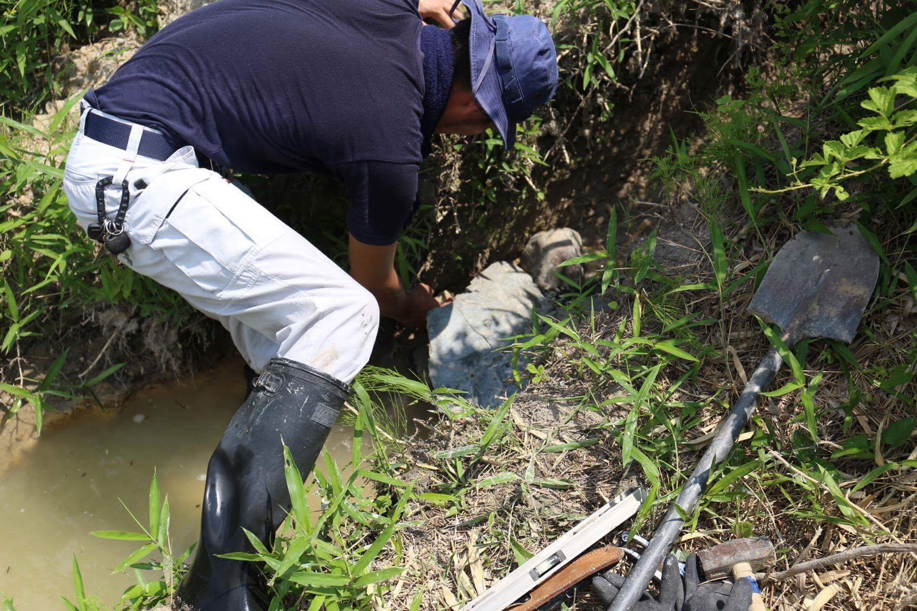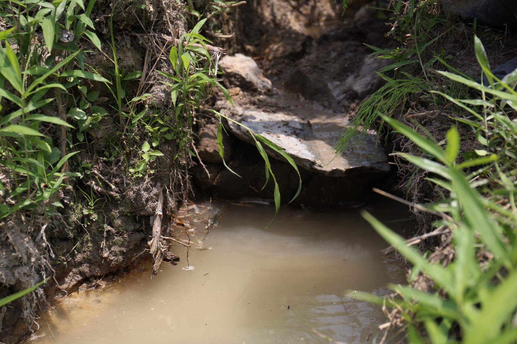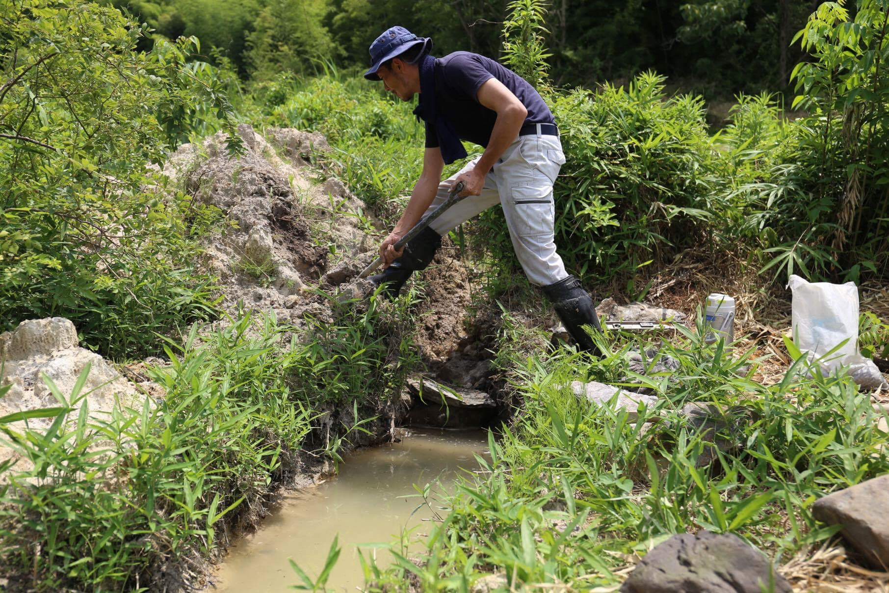 それから数年経った今、溝を大きく切っていただき、そこから湧水が出て。