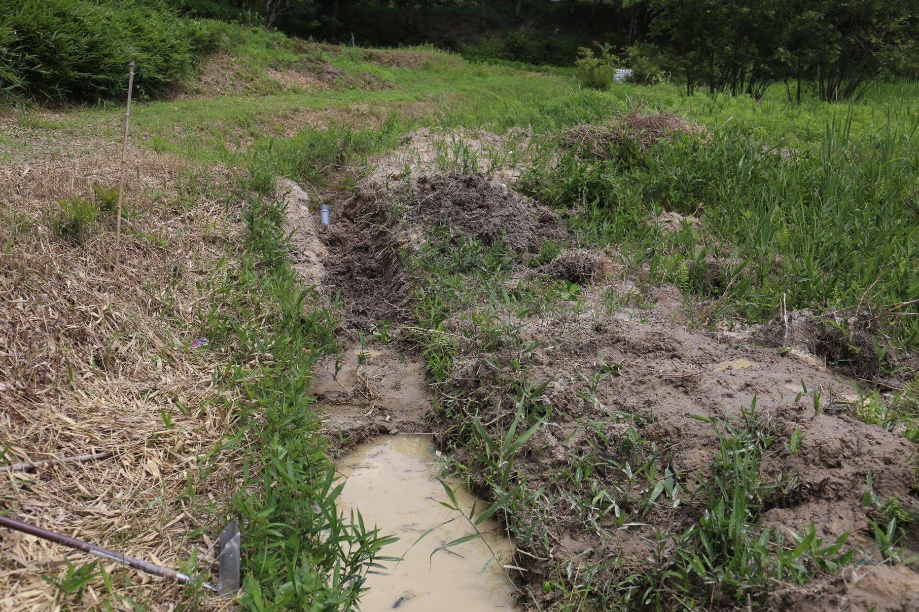 実は先日の大雨で、排水パイプを埋め立てたところが一箇所だけ崩れてしまいました。
