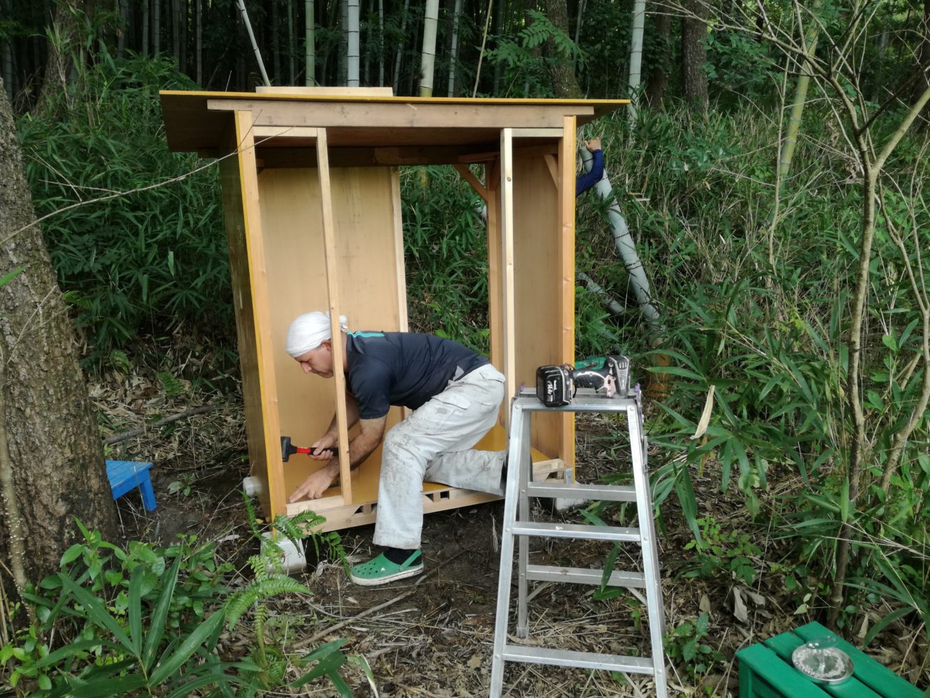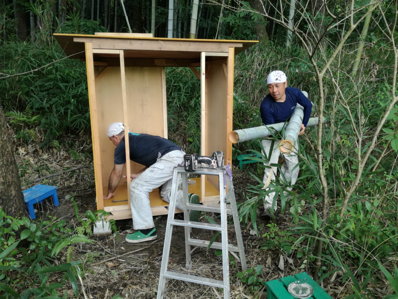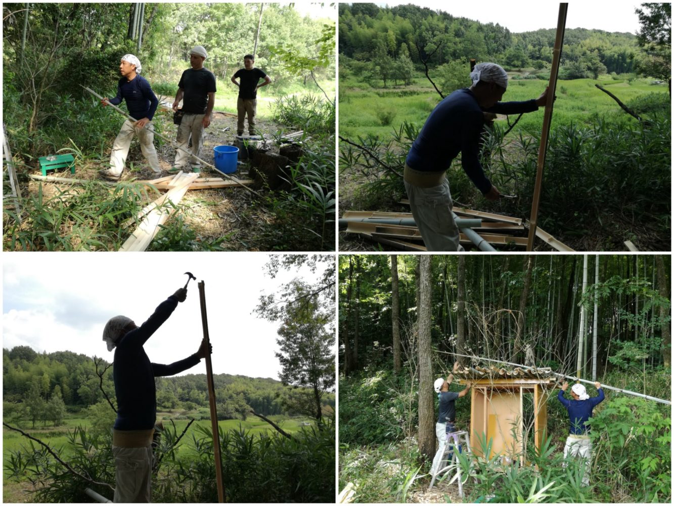 竹の屋根も、トタン買ってくるのはやっぱりなんだか味気無いからと、その場で考えて工夫なさっていて。