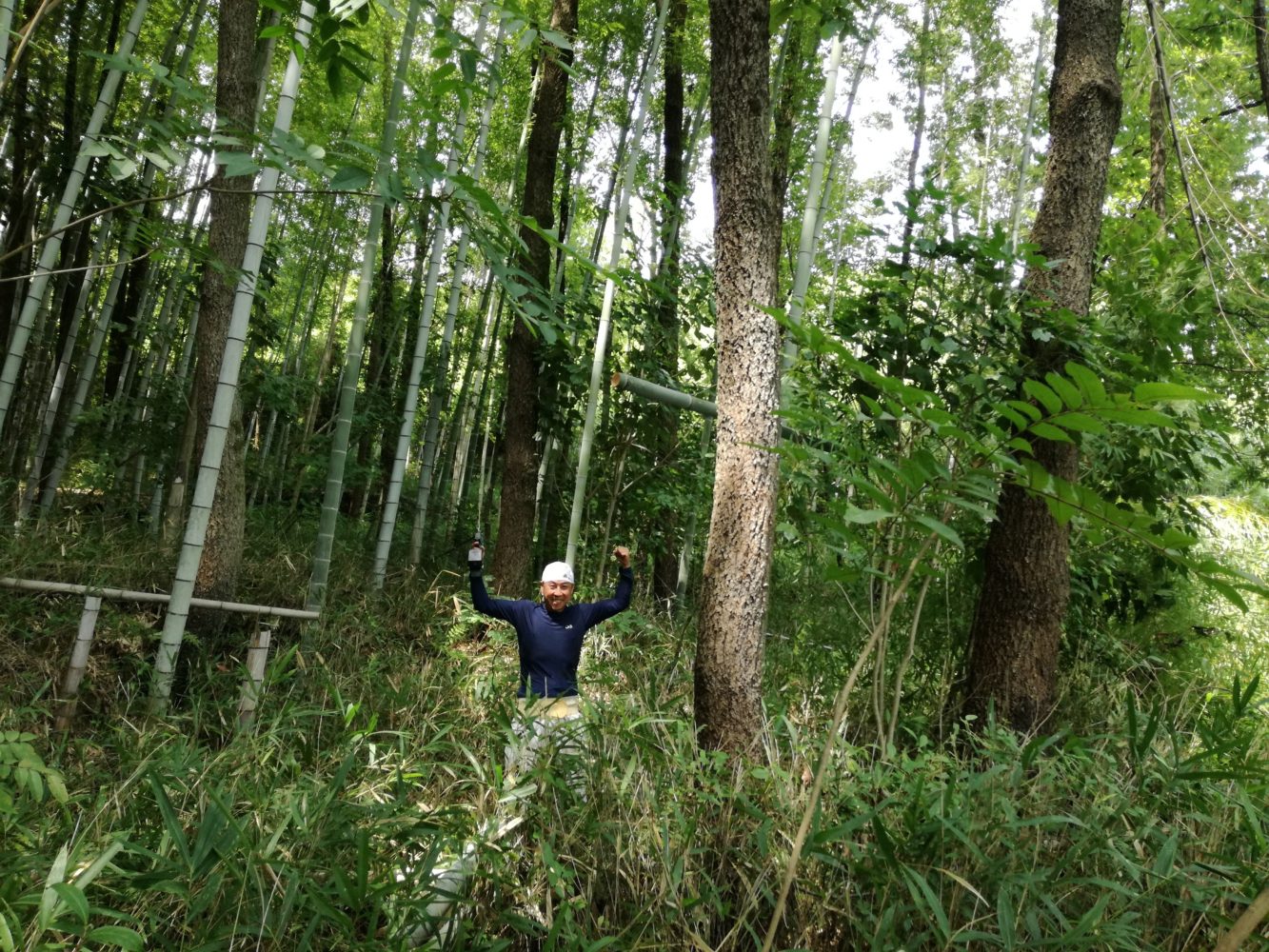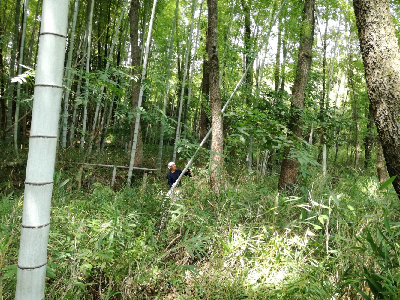 挨拶もそこそこに、感動しながらあれこれ眺めていて、あれ?きみどんがいないなーと思ったら、竹の切り出し中!