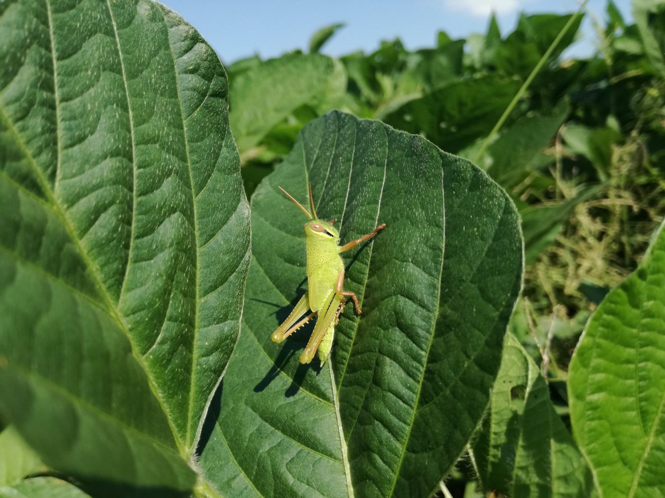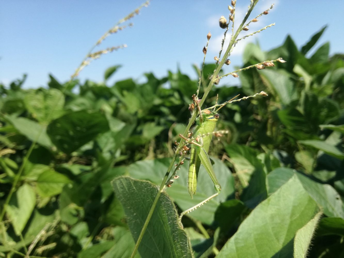さて、草とともに育つ大豆。みんなで種蒔きした大豆たち。元気に育っていますよー!