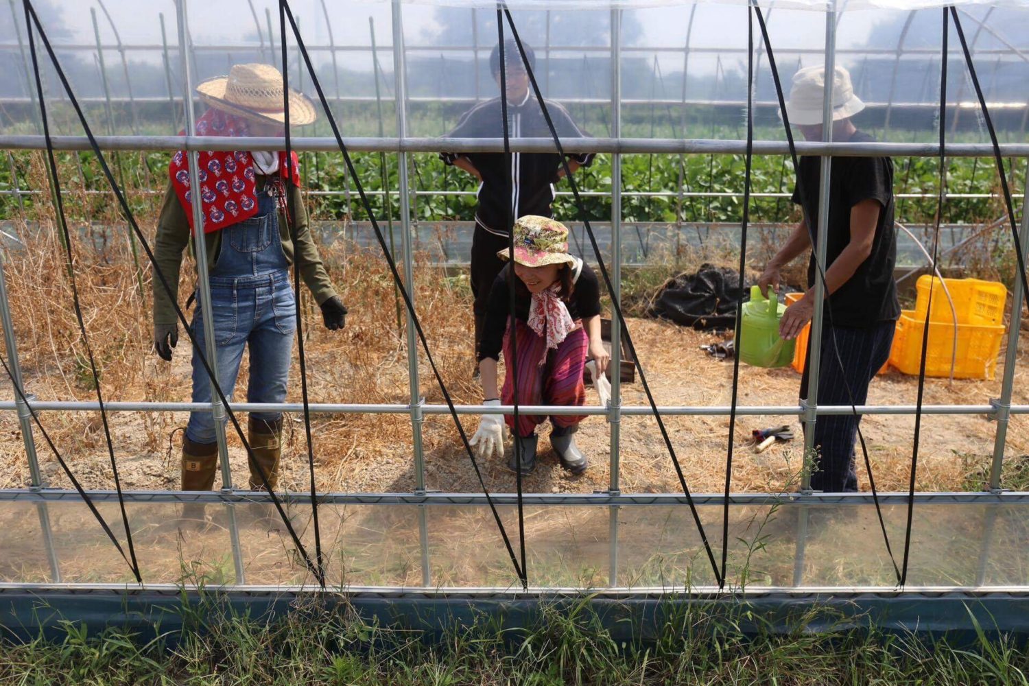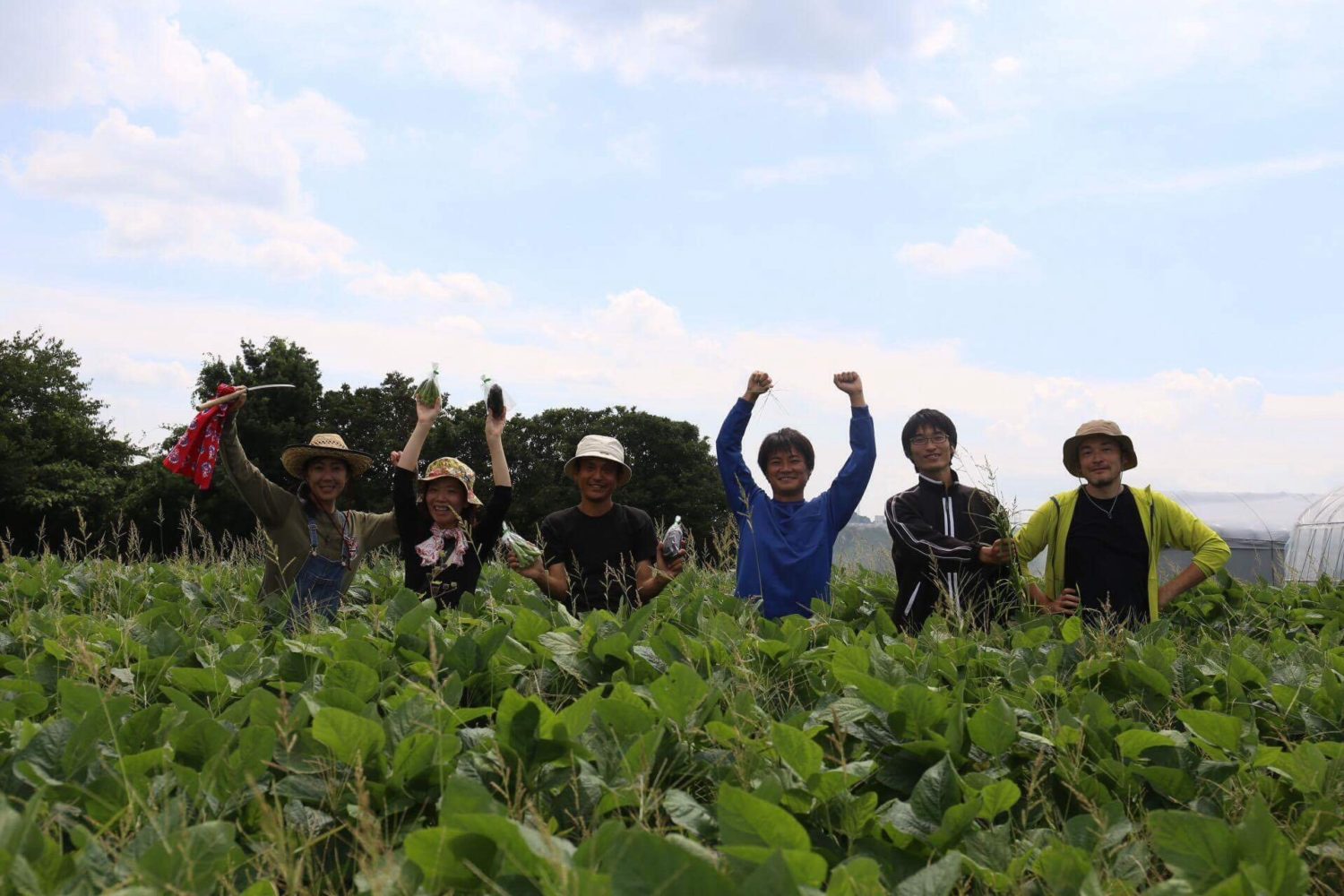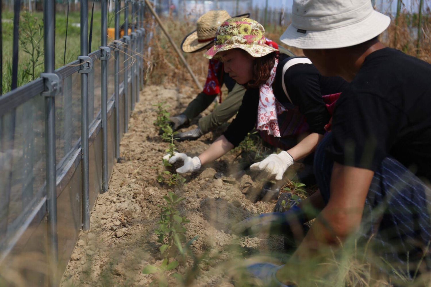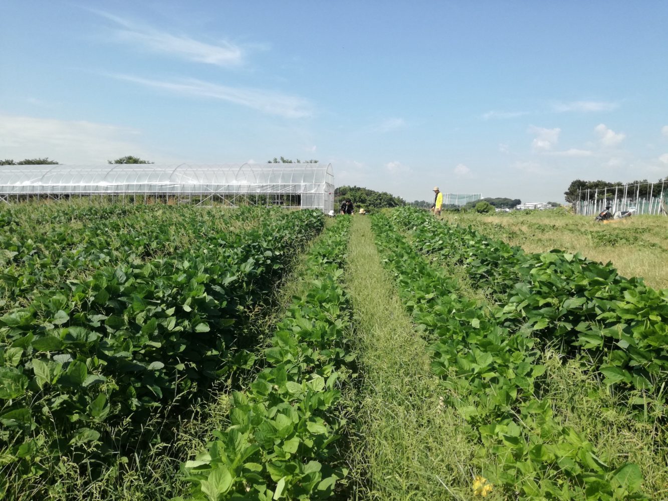 草のお話しをしつつ大豆のお手入れをした後に、2日に長江さんがお持ちくださったマンジェリコンをハウスに定植。