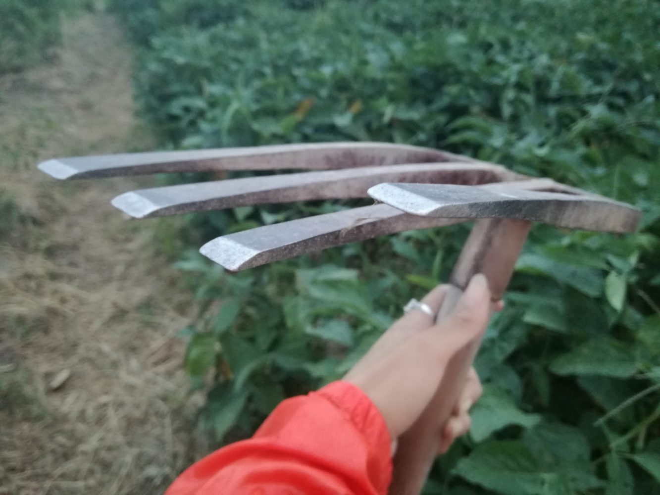 しかしここの畑は茅の根が強烈で。鍬が曲がっちゃう。