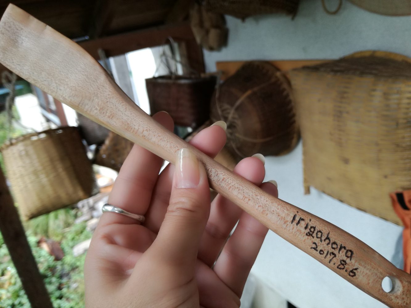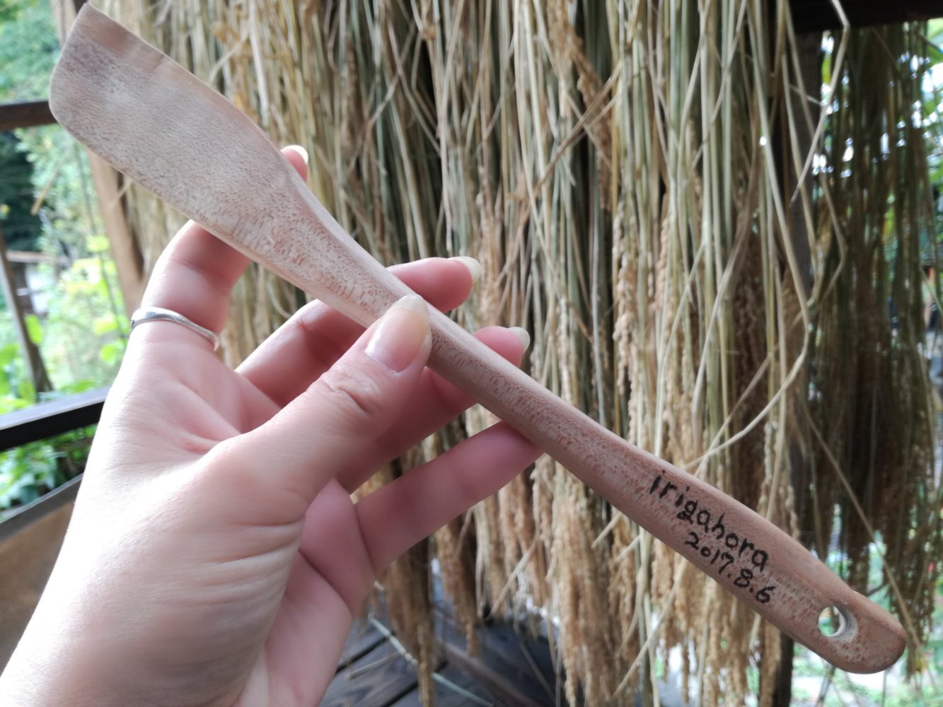 あの時、星野くんが伐採を行ってくださったのですが、なんと、その桜の木でスパチュラを造ってきてくれたの!