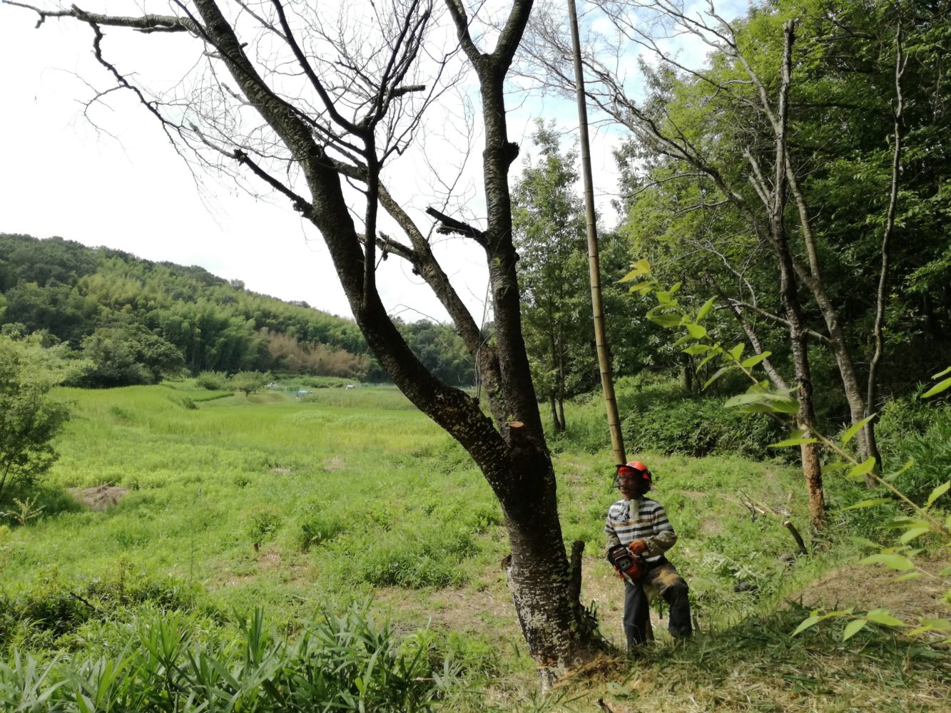 あの時、枯れてしまっていても、ただ単に桜の木を「伐る」ということにはとても抵抗がありました。枯れてしまっていてもずっとそのままにしてあったのですが、枝先が崩れて落ちてくるようになってしまって。そして、斜面にあったためいつか倒れてしまうと予測できたので、こどもたちが遊びに来た時に万が一の危険があってはいけないと、伐採を決めたのです。
