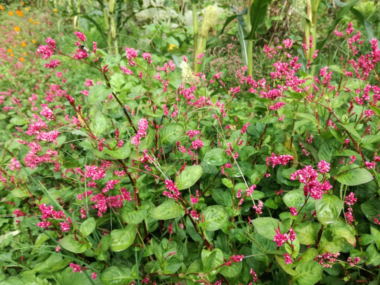 丸葉藍のお花がそこかしこに満開。この地区の在来の藍と教えていただきました。