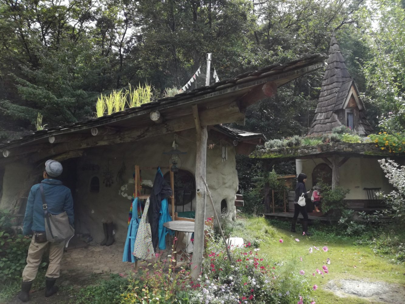 建物の屋根にはナスタチウムとか稲とか、いろいろな植物たち。