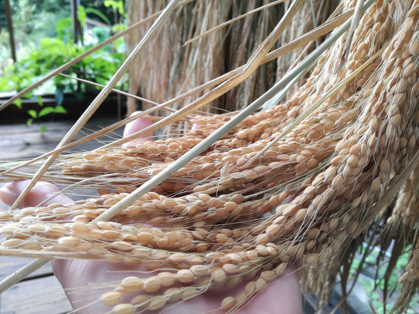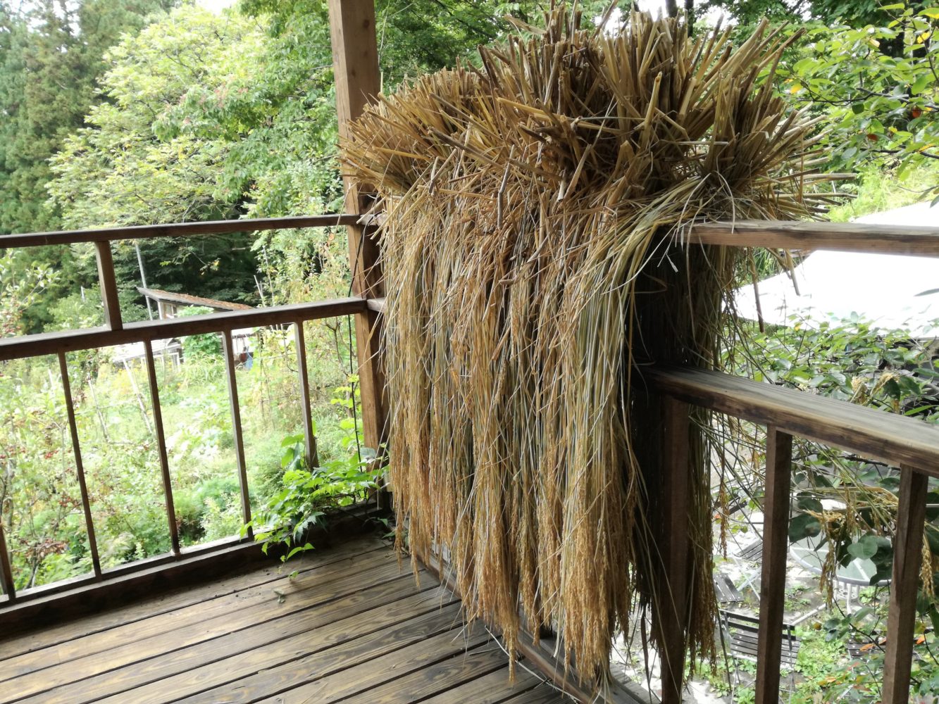 手すりに干してあったこちらの稲、とっても茎が長くて気になって。