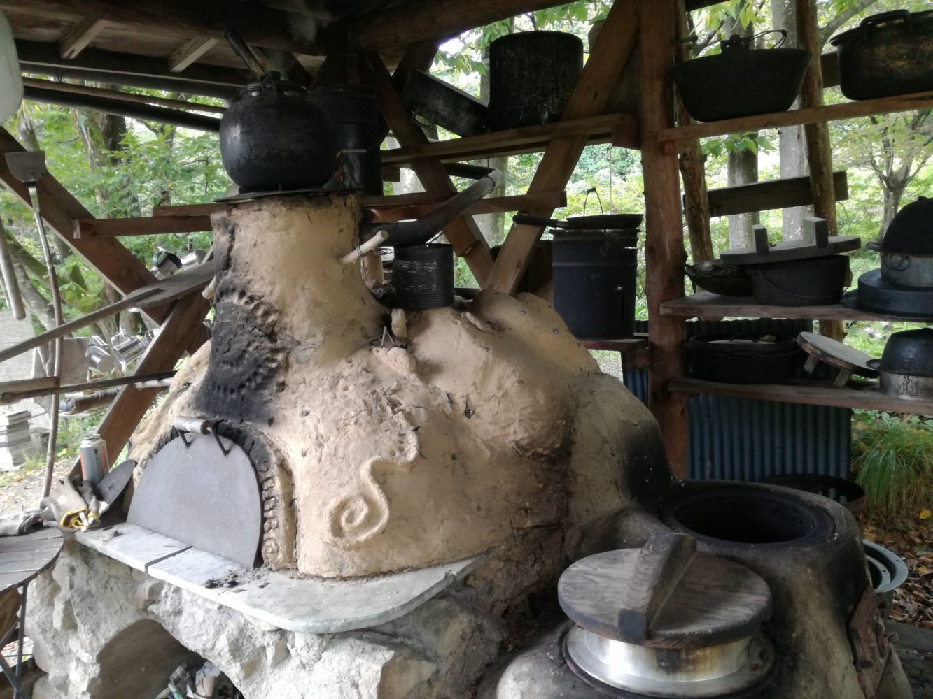お昼ご飯はアースオーブンで焼くピザ。
