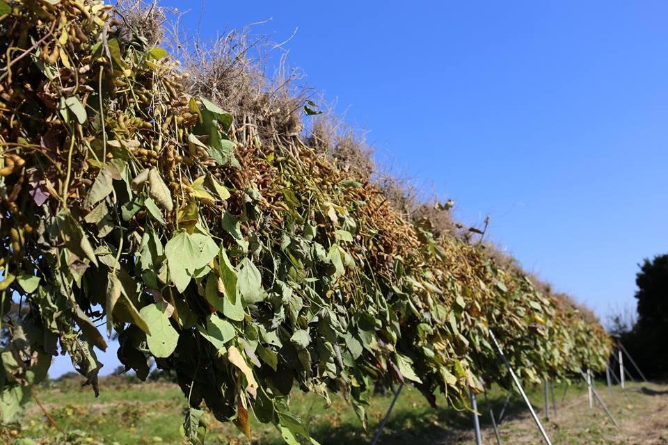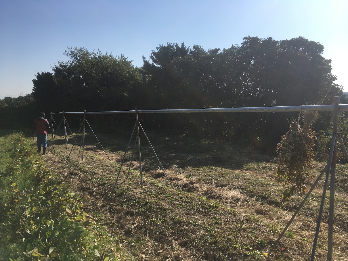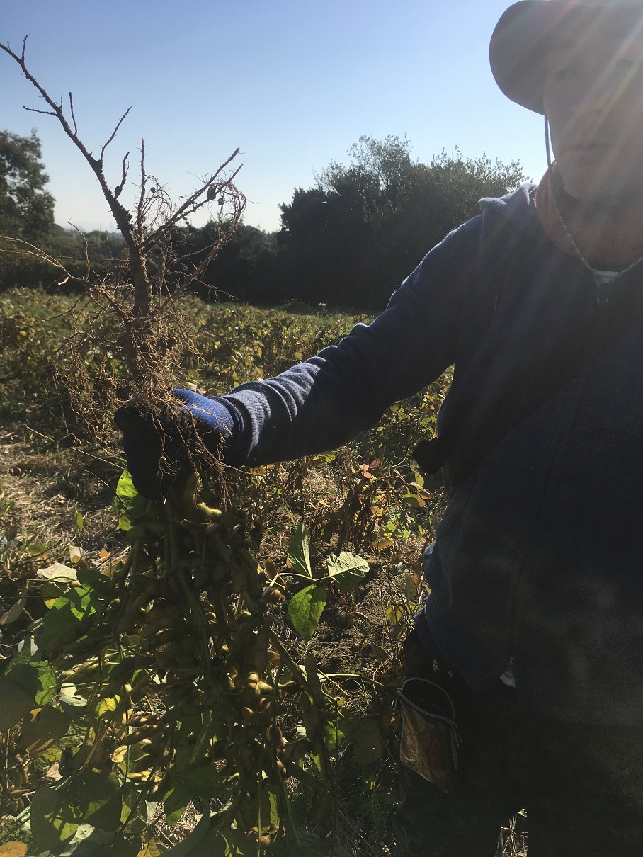 今回は、第一回目に播いた大豆の収穫です。
