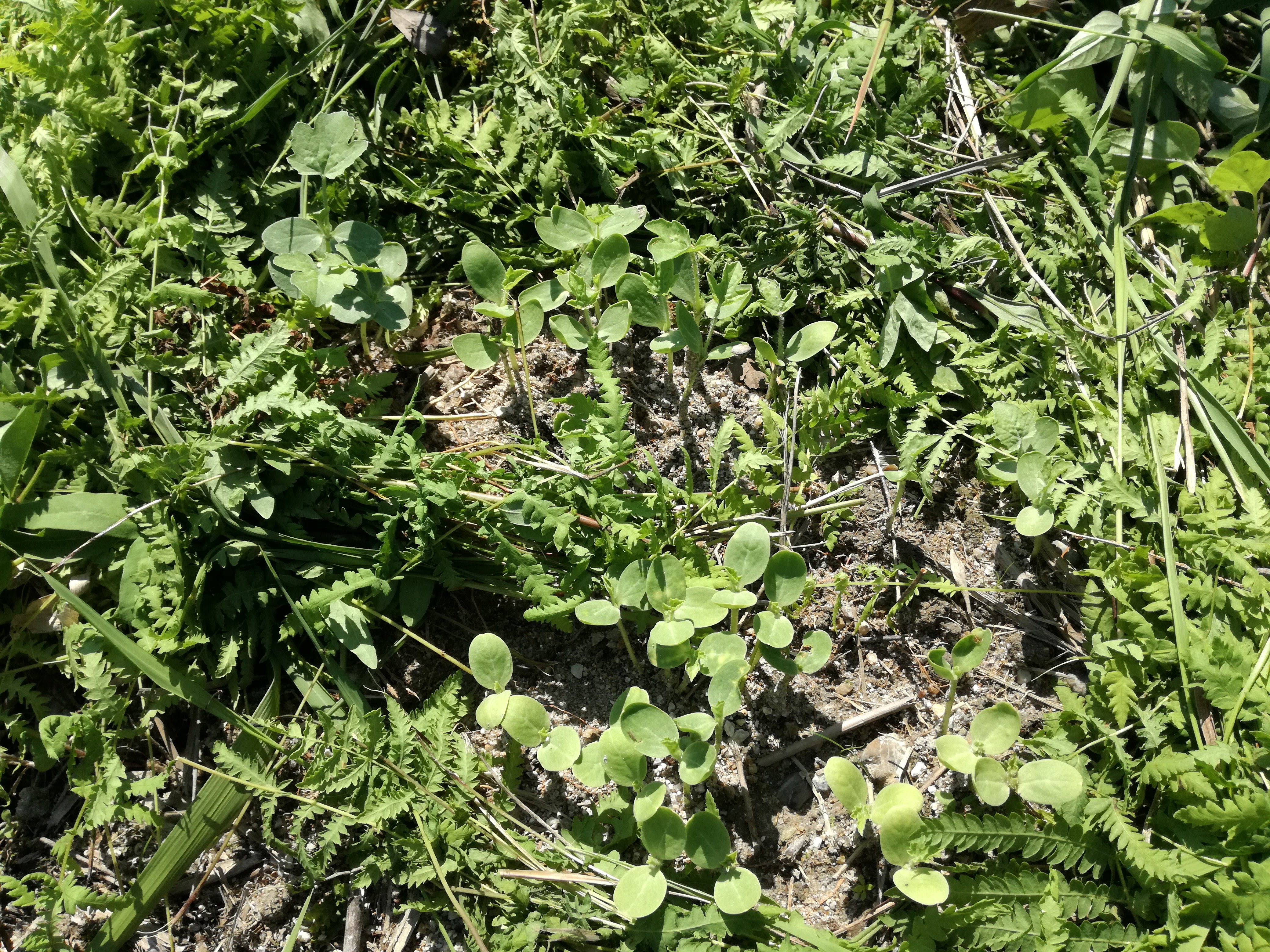 土の状態が知りたくて、各所に少しずつ種を蒔いてみました。