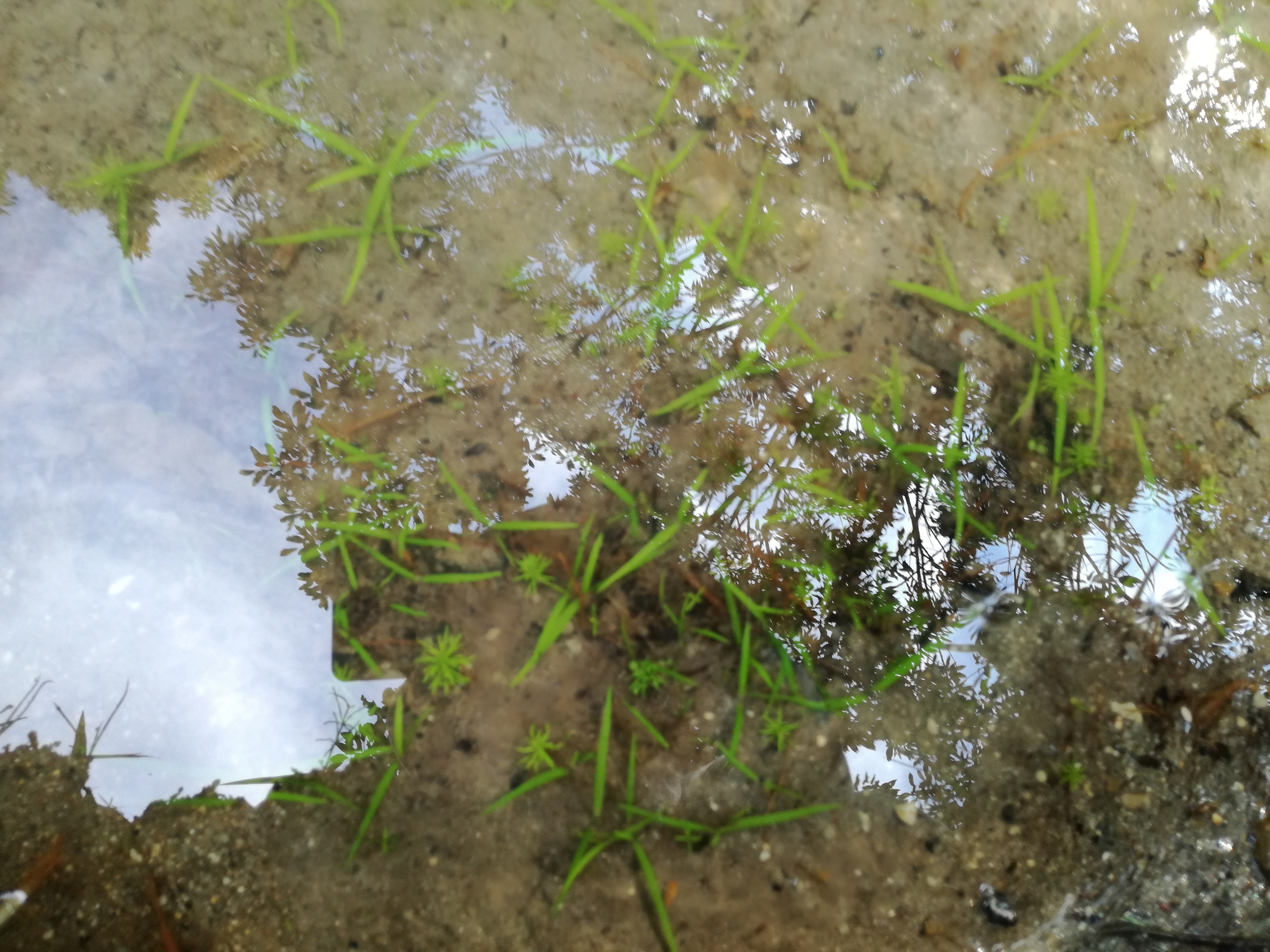 もう一箇所、溝の中で湧水が出ているところを見つけました。その周りに、水草が生えてきてる。