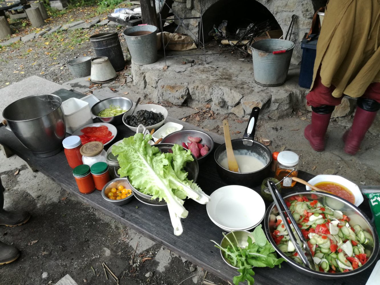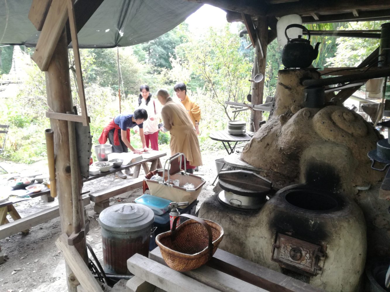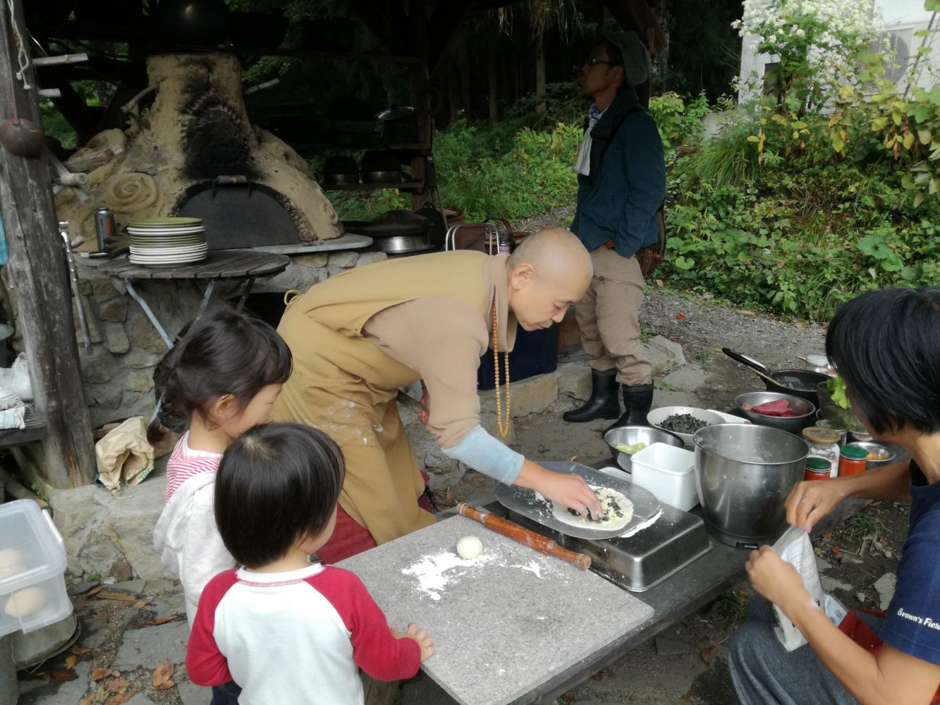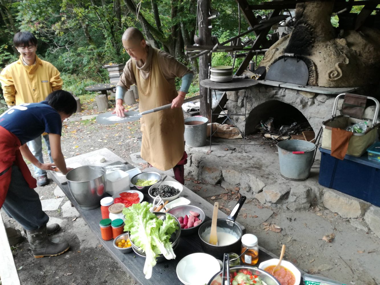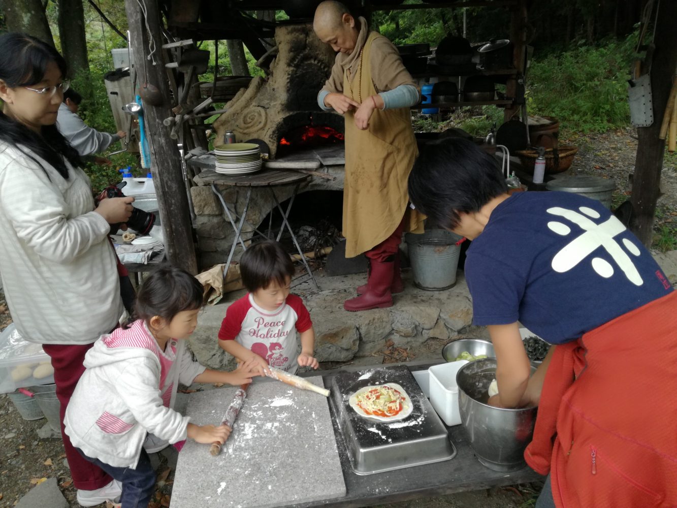 お昼ご飯はアースオーブンで焼くピザ。